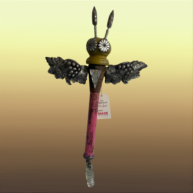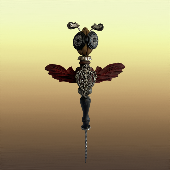 Artist Marian Bus has an eye for unexpected beauty and a gift for turning the ordinary into the extraordinary. Her whimsical Maid Marian Dragonflies are handcrafted from salvaged treasures—think vintage pickets, faucet knobs, spoons, rulers, and other forgotten finds—each piece transformed into a charming, one-of-a-kind work of art.