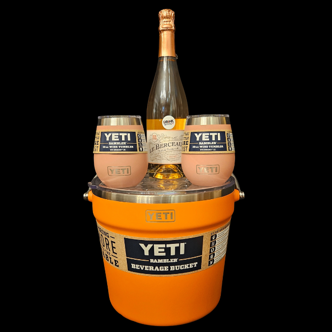 Ready for your next adventure? Whether you’re headed to the lake, beach, or mountains, this set has you covered! Keep your bubbly ice-cold in a rugged Yeti ice bucket, sip your favorite wine from durable, insulated Yeti wine tumblers, and pop open a bottle of sparkling bubbles—all generously donated by Raleigh Custom Burn.
