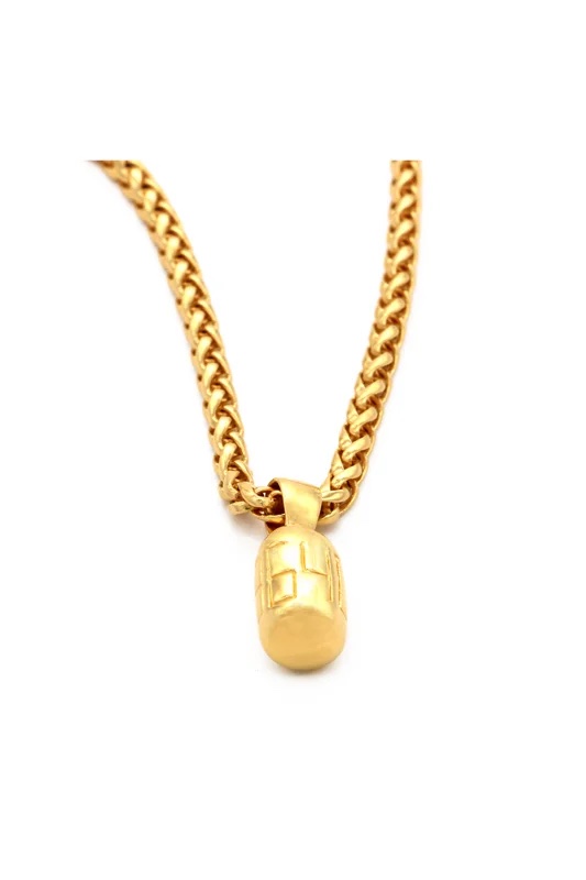 18 karat gold over bronze pendant and brass chain.