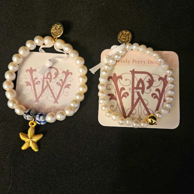 Named after one of Wendy’s favorite NC destinations, this bracelet features classic white pearls with a single 8mm gold-over-hematite round. Simple, timeless, and perfect for everyday wear or gifting.